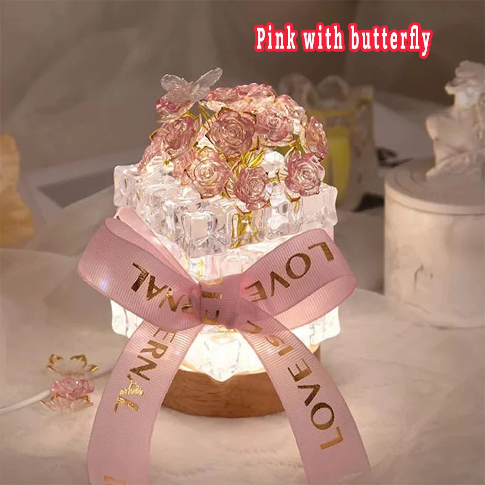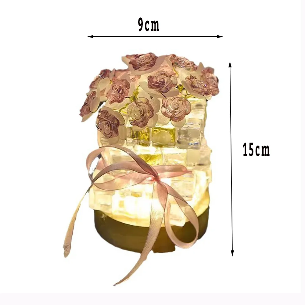 DIY Handmade Valentine's Day Birthday Gift Simulation Rose Flower Bedroom Sleeping Ice Cube Table Light Handmade Craft Decor